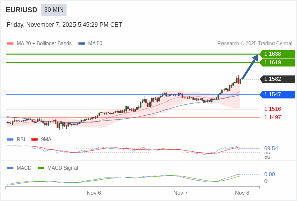 交易策略: 看涨,当 1.1547 为支撑位。